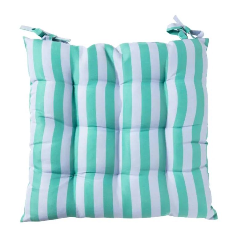 Geef je stoelen een vrolijke upgrade met dit gestreepte zitkussen! De kussens geven je interieur of tuinset direct een kleurrijke touch. Met een afmeting van 40×40 cm en een zachte vulling zit je altijd comfortabel, of het nu aan de eettafel, in de tuin of op het balkon is. De kussens zijn voorzien van 2 handige strikjes, zodat je de kussens gemakkelijk aan een stoel knoopt.